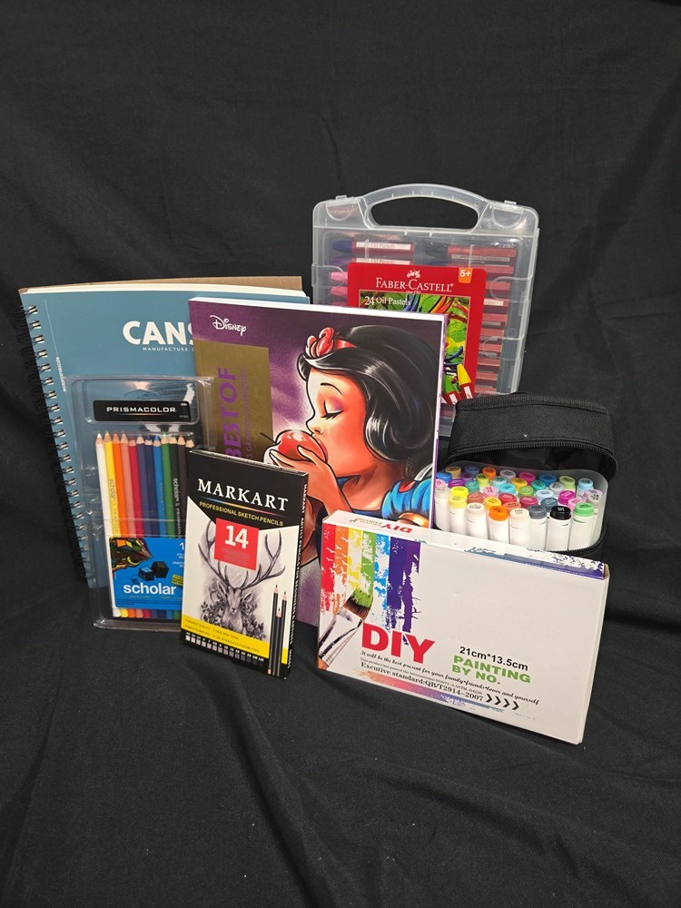 Let your creativity flow and your worries fade with this fun and relaxing “Doodle Your Stress Away” bundle! Whether you’re a seasoned artist or just looking for a little mindful escape, this set has everything you need to unwind, focus, and create something beautiful. This is a great all-around art package that includes: Canson Mixed Media Sketch Pad Best Of Disney Adult Color by Number Prisma Color - Colored Pencils Markart Drawing Pencils Faber Castell Oil Pastels Ohuhu Colored Markers Paint by Number