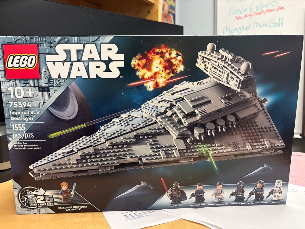 1555 Pieces NIB LEGO Star Wars buildable toy starship playset for kids – Build a detailed and playful brick built version of the Imperial Star Destroyer and recreate iconic scenes from Star Wars: A New Hope 7 LEGO Star Wars minifigures – Including Darth Vader, Commander Praji, an Imperial Gunner, Imperial Navy Trooper, a Stormtrooper and a LEGO Star Wars 25th anniversary minifigure of Cal Kestis