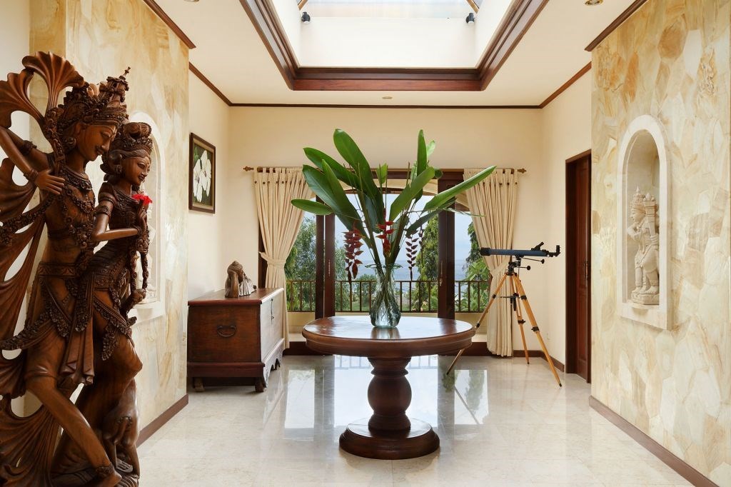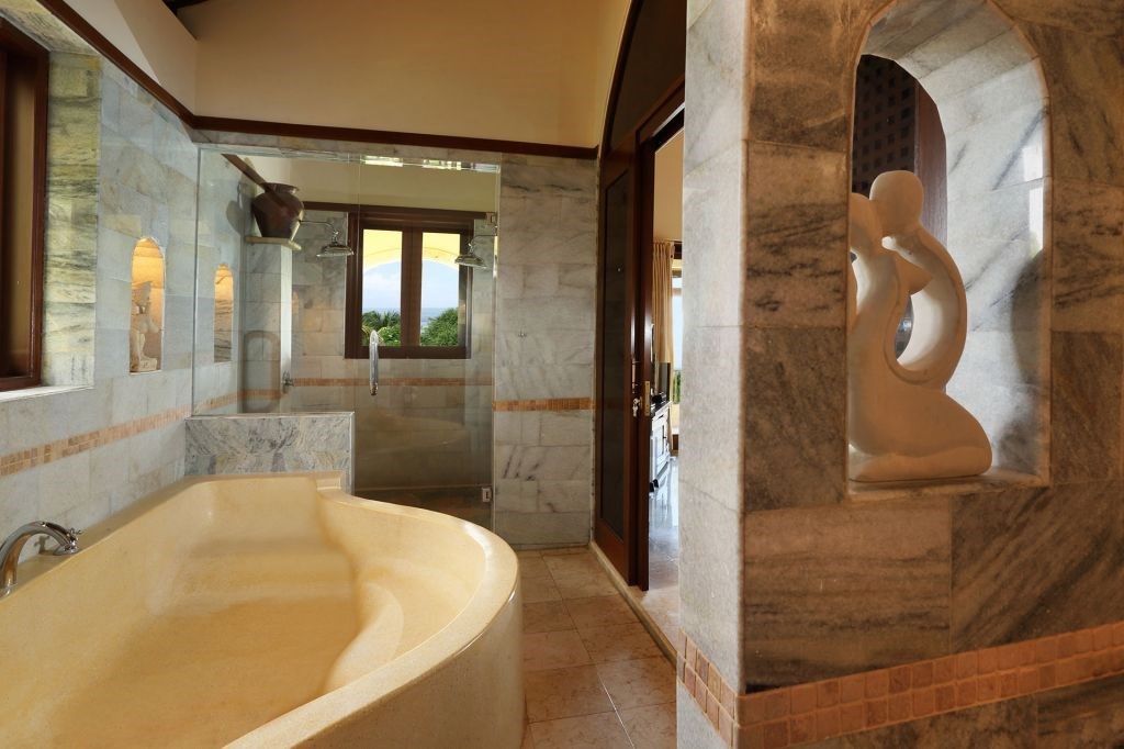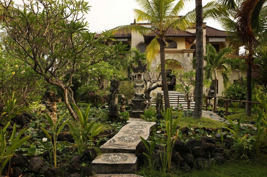 THE VILLA The accommodation that this private villa offers is nothing short of first class. The informative Balinese staff will pamper you in every way and take care of all your needs. Villa Pantai is a modern yet classic, elegant, yet relaxed, allowing you to escape the limits of time and immerse yourself in the most indulgent of experiences. This is unpretentious luxury in uncommonly beautiful surroundings. This is a unique Private Bali Villa Rental opportunity. Amed is the perfect getaway and our villa will assure you a trip of a lifetime. This coast is Bali’s easternmost point, which is highlighted with spectacular sunrises over the neighboring island of Lombok and the hundreds of brightly painted jukungs (fishing boats) returning to shore in the early mornings. Enjoy a cup of tea early in the morning from the villa’s second story balcony and witness some of the most incredible sunrises. If you are lucky you will catch a glimpse of dolphins right off the beach playing in the waters. Most people would agree after spending some time in Amed that this is Bali’s best-kept secret. Villa Pantai offers nearly 7000 sq ft. of secluded luxury on 1.5 acres of private beachfront. Boasting four spacious suites with spectacular views, A/C, and 4.5 full, modern Western bathroom facilities, Villa Pantai is the essence of true luxury!. All suites have heavenly views of the sea and mountains. For an added convenience there is a laundry facility available in the villa. The kitchen is fabulous. Granite countertops, seating for 8 – 10 people, stainless steel appliances, gas stove with oven, and other modern conveniences - all surrounded by windows facing the beach, gardens and swimming pool area. The kitchen flows into the adjacent living area - with plush leather couches, koi pond, media center (boasting 60" plasma TV with an extensive DVD collection), and 650-gallon saltwater aquarium filled with colorful, local species. Wander the villa and enjoy the collection of local Asian artwork and intricate carvings. There is a grand billiard hall with an adjoining, state-of-the-art fitness room. Cool off on a raft in the sleek, lighted, 50ft. swimming pool. Enjoy a traditional Balinese massage poolside in the privacy of the shaded, open-air pavilion - a truly hypnotic experience. Teak furniture with cozy cushions surround the pool where you might relax, work on your tan, enjoy a good book or simply daydream listening to the waves lapping the nearby shore. Feeling active? Put on a mask and enjoy some of the most spectacular snorkeling you’ll ever experience in your backyard!. Santai (”relax” in Balinese) here at Villa Pantai: blossoming flowers, trickling fountains and abundant fauna add to the tranquility of this experience. Lose yourself in the beauty of the island and people here. Wander out to the front yard and feed one of 300 koi in the 60,000 gallon pond. Scheduled feeding time for our fishy friends is 9a.m. and 5p.m. We encourage you to feed them; they’ll be eating out of your hand by the end of your stay.